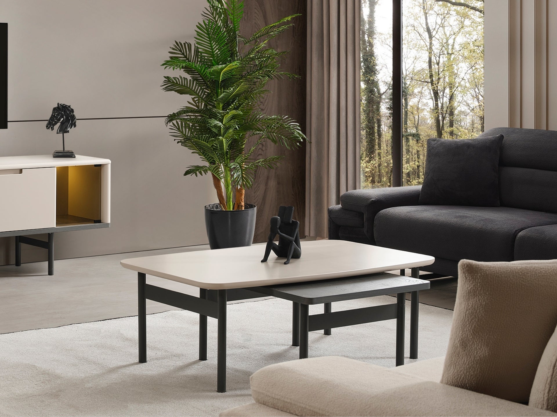 Safir 3'lü Sehpa (Orta + Yan + Puf Dahil)